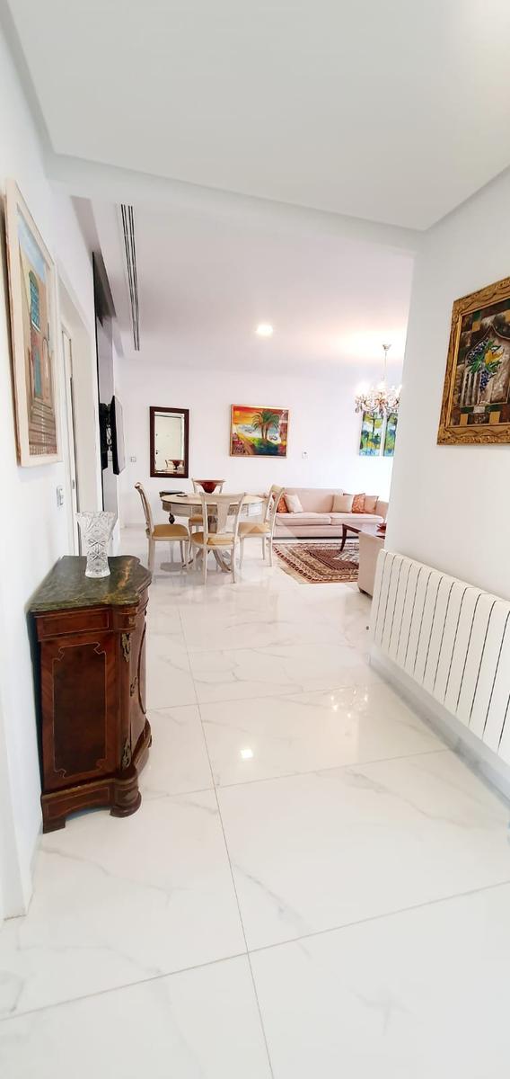 À louer un magnifique appartement S+3 meublé de très haut standing, situé au 2 et dernier étage d’une résidence calme, bénéficiant d’une superbe vue sur mer et d’une grande terrasse idéale pour se détendre. L’appartement offre des prestations de qualité, notamment le triple vitrage, la climatisation centrale, le chauffage central ainsi qu’un système d’éclairage domotique assurant confort et modernité. La cuisine est richement équipée et l’appartement est proposé entièrement meublé avec goût. Deux places de parking au sous-sol complètent ce bien d’exception.