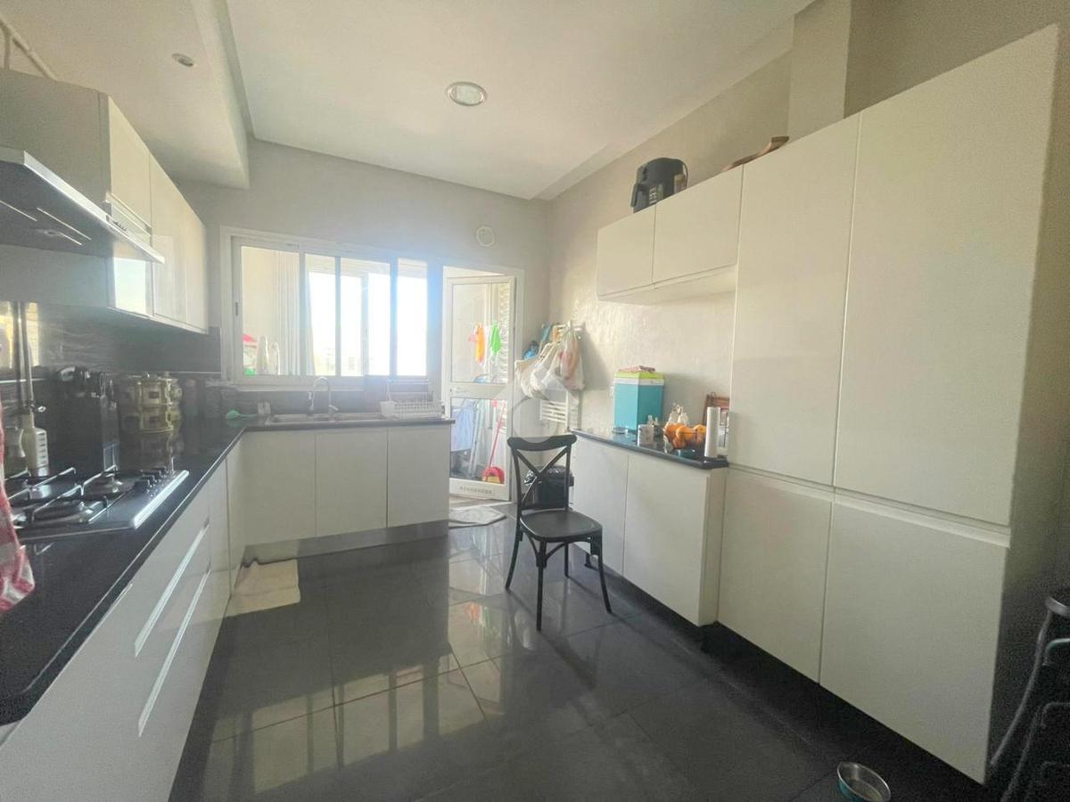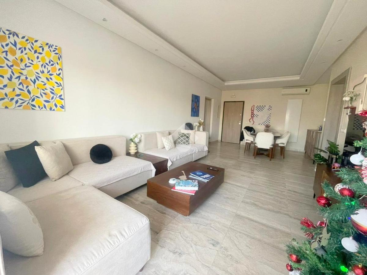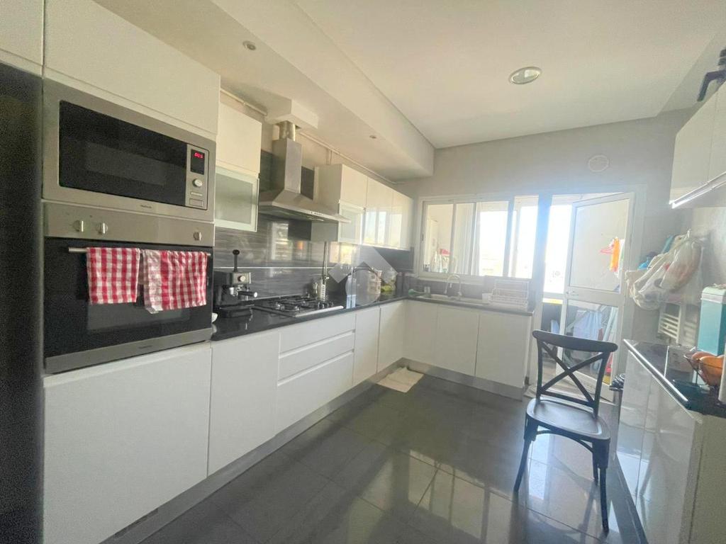 À l’entrée, on découvre un salon spacieux et lumineux ouvrant sur un balcon, offrant un cadre de vie agréable. La cuisine est entièrement équipée avec four, plaque de cuisson et hotte, et dispose d’un séchoir, ainsi que d’une salle d’eau pour les invités.
