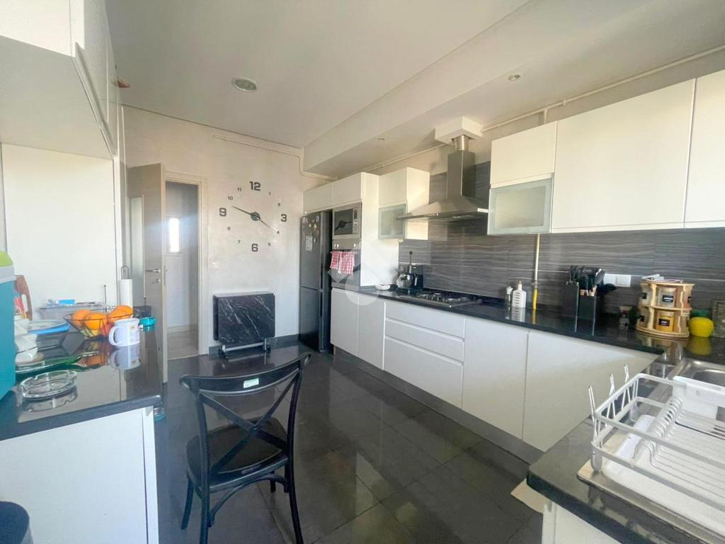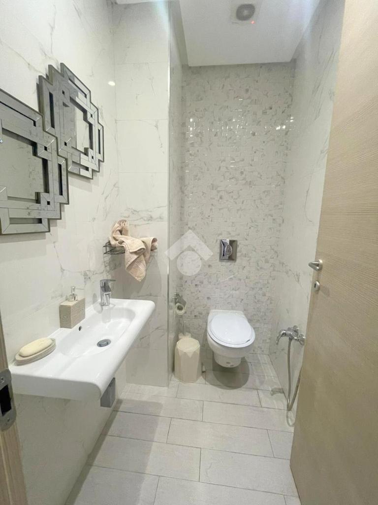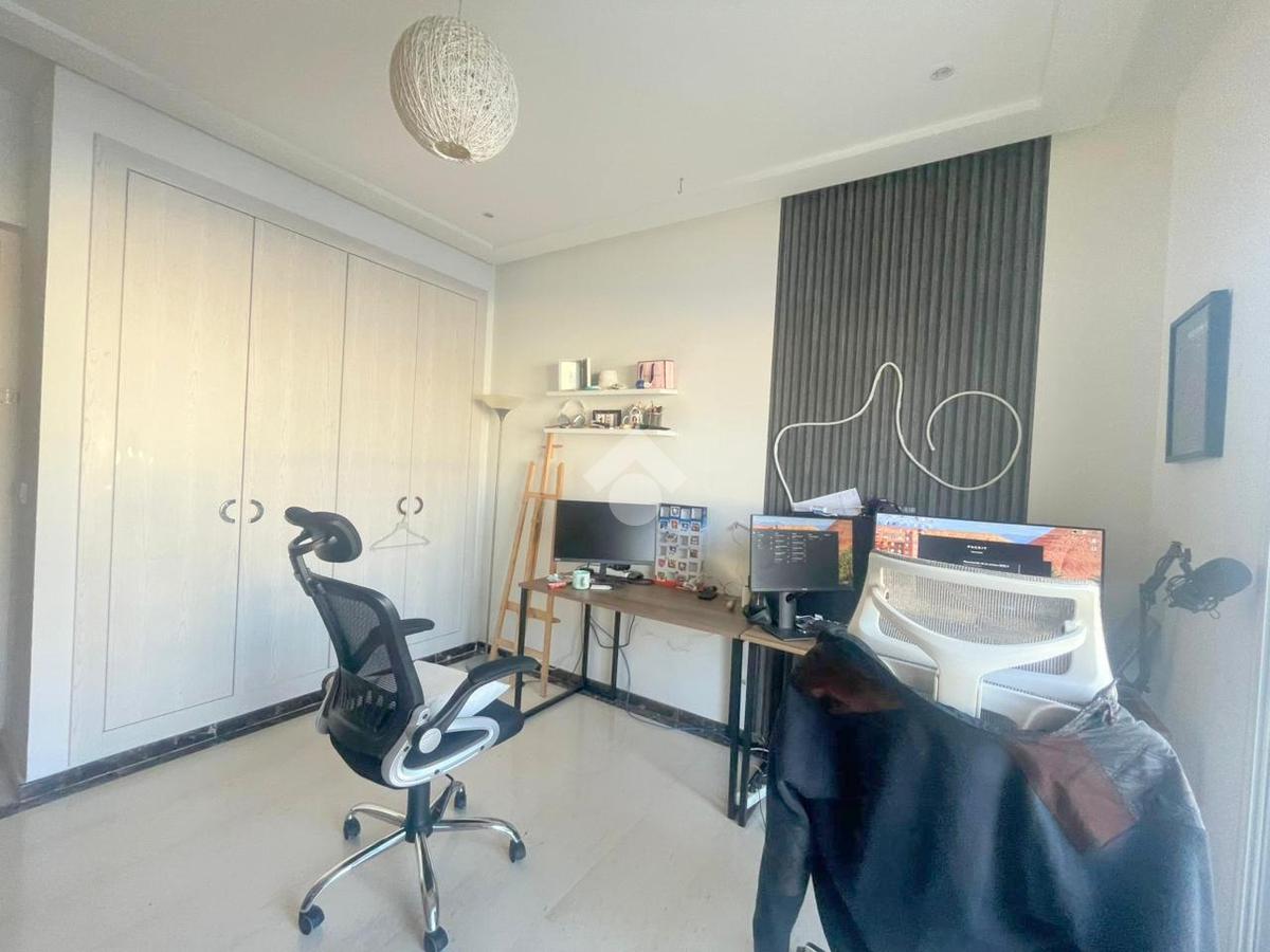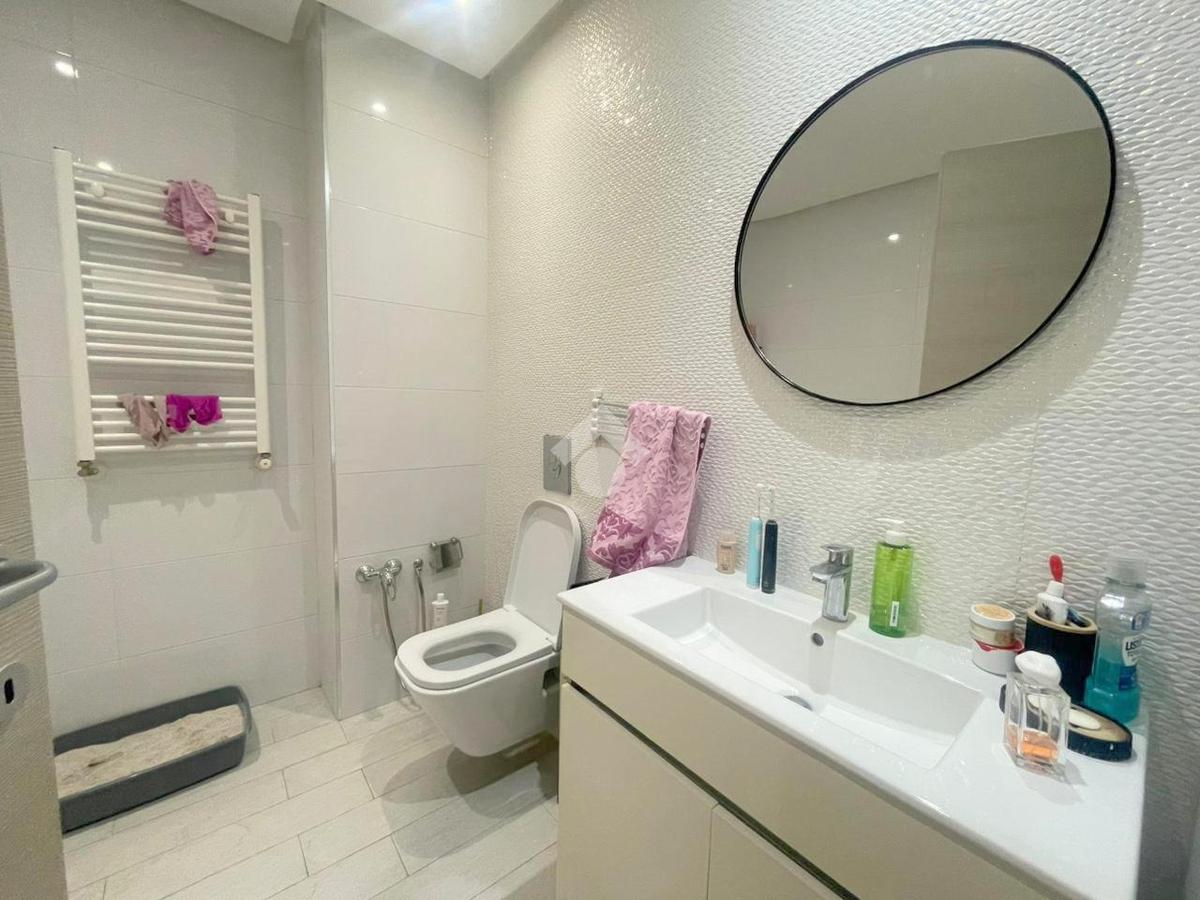À l’entrée, on découvre un salon spacieux et lumineux ouvrant sur un balcon, offrant un cadre de vie agréable. La cuisine est entièrement équipée avec four, plaque de cuisson et hotte, et dispose d’un séchoir, ainsi que d’une salle d’eau pour les invités.