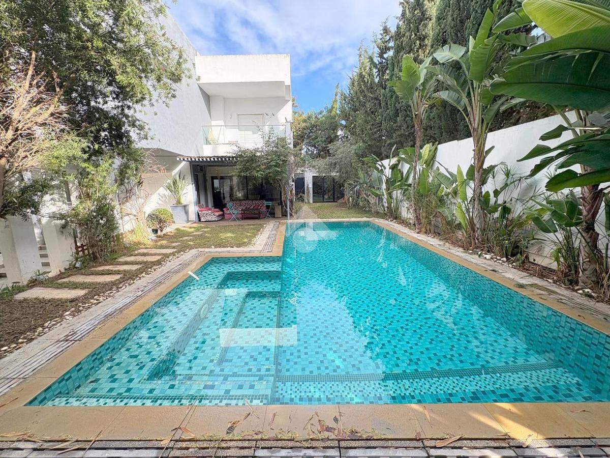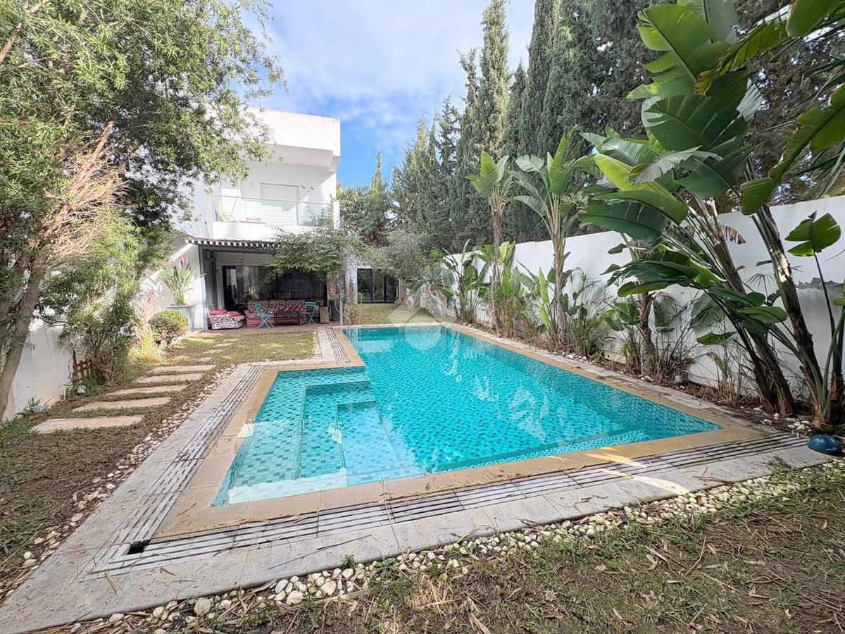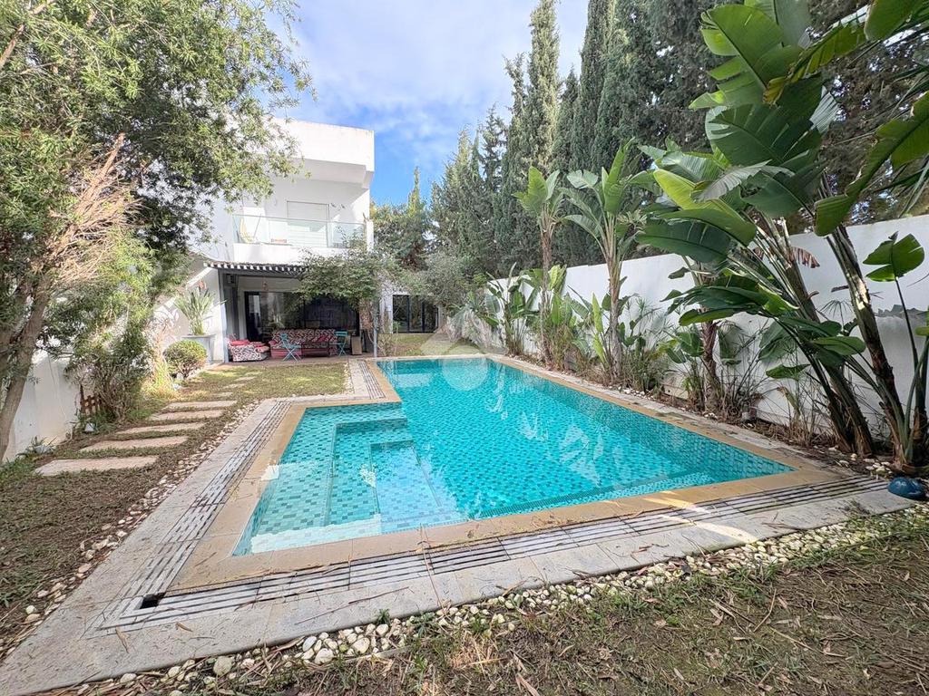 Villa S+3 située à Gammarth, offrant un cadre de vie agréable avec jardin et piscine.