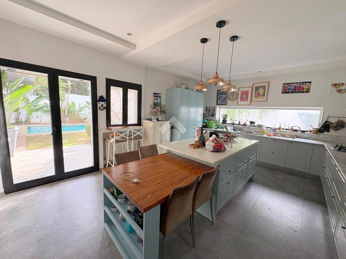 La cuisine est équipée (four, plaque de cuisson et hotte) et donne un accès direct au jardin.